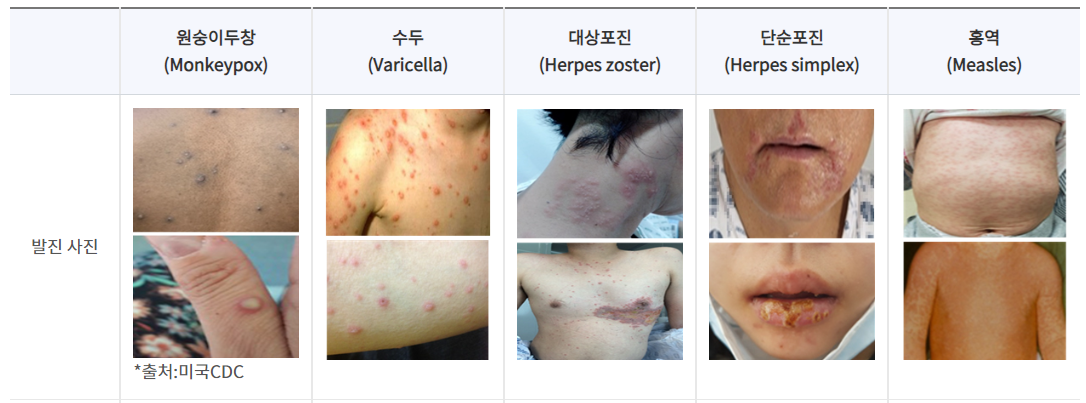※ 원숭이두창과 다른 피부질환과의 차이점