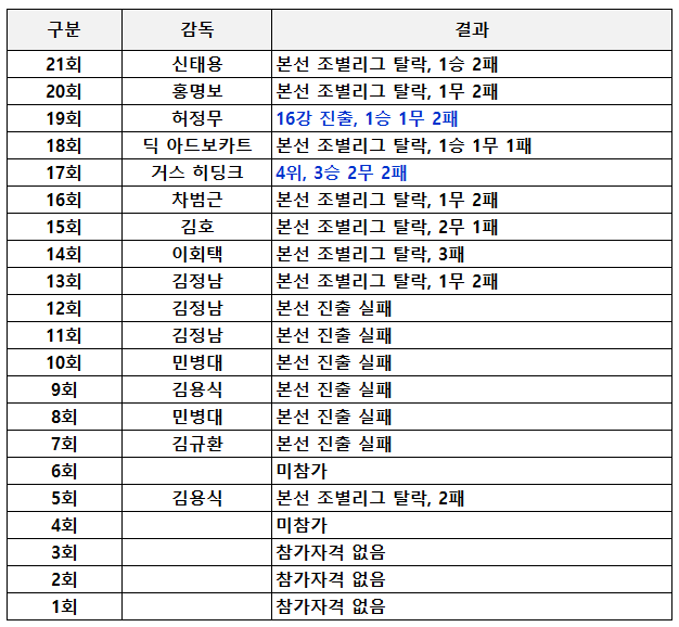 2) 대한민국 역대 월드컵 성적