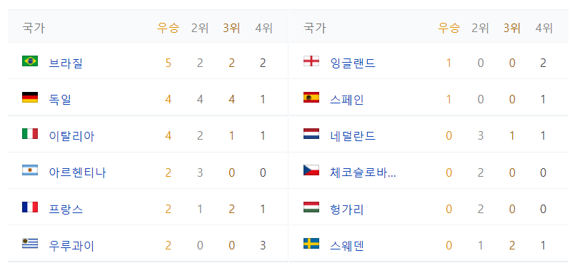 4) 월드컵 역대 국가별 성적